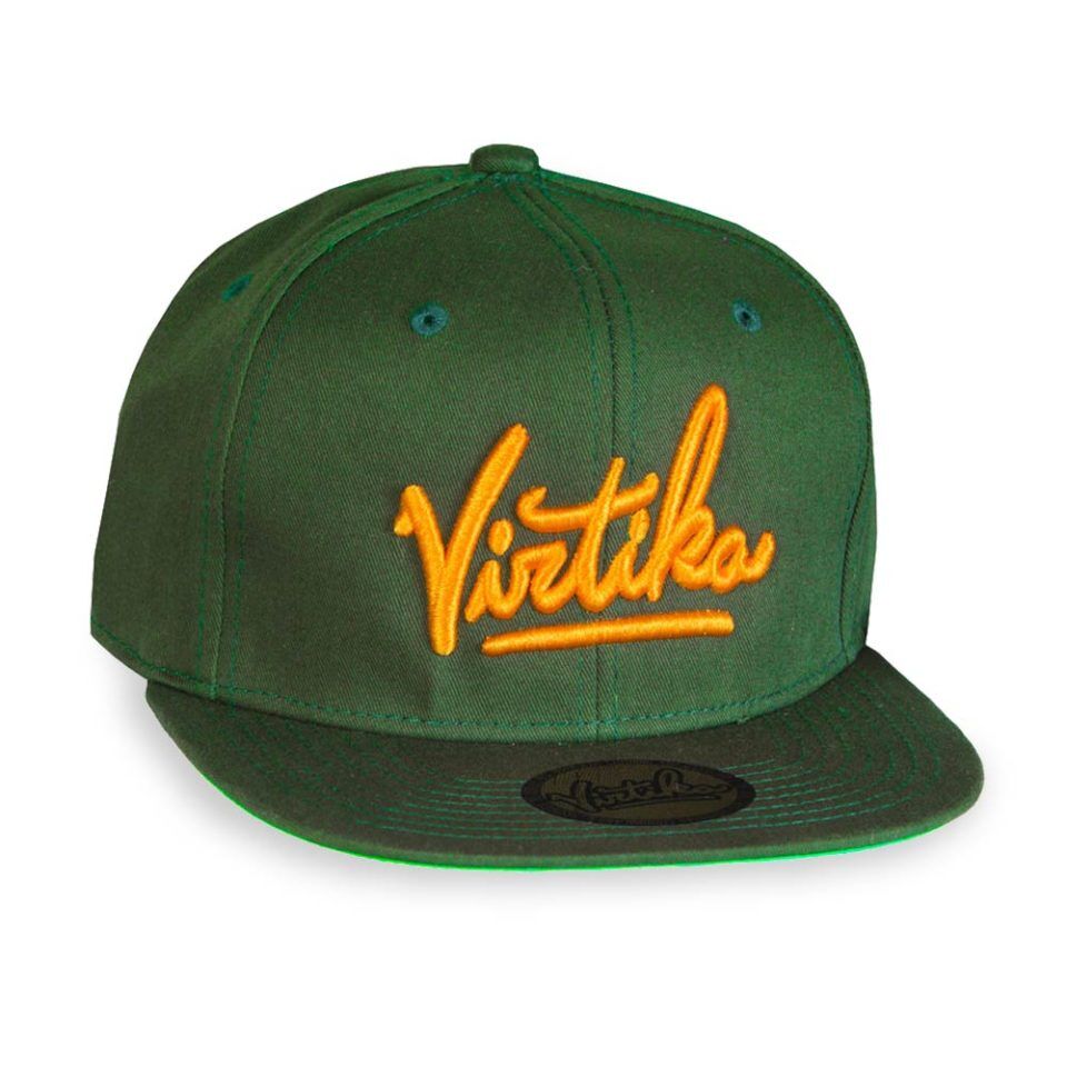 – Virtika script woven loop tag on back
